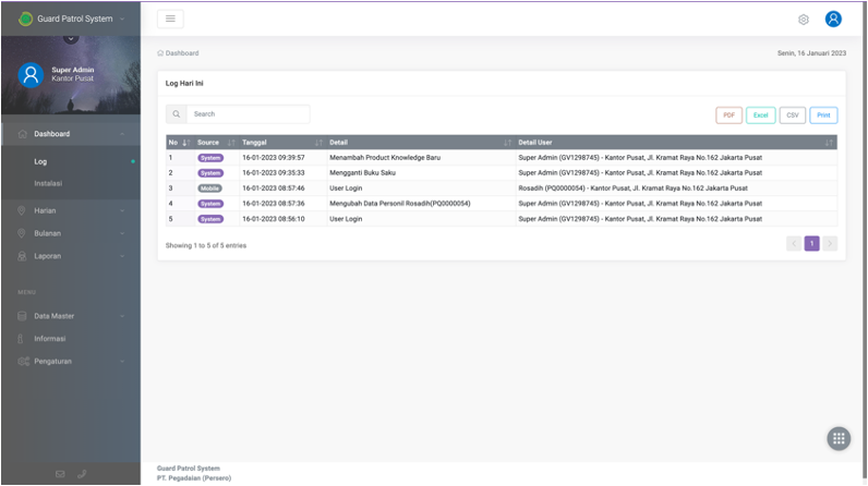 Guard Patrol System (GPS) adalah suatu sistem patroli berbasis Smart Phone dan QR Code. Selain untuk aplikasi patroli, GPS juga berfungsi untuk aplikasi absensi berbasis QR Code dan Location Based Service (LBS). GPS client dipasang di setiap smart phone, dan GPS Server dipasang di cloud server berbasis internet. GPS cocok untuk dipakai di kantor-kantor yang wilayah geografisnya tersebar luas seperti PT Pegadaian, sehingga karyawan / petugas dilapangan dapat terpantau secara waktu nyata, dengan demikian dapat meingkatkan akuntabilitas karyawan/petugas dalam melaksanakan pekerjaannya.